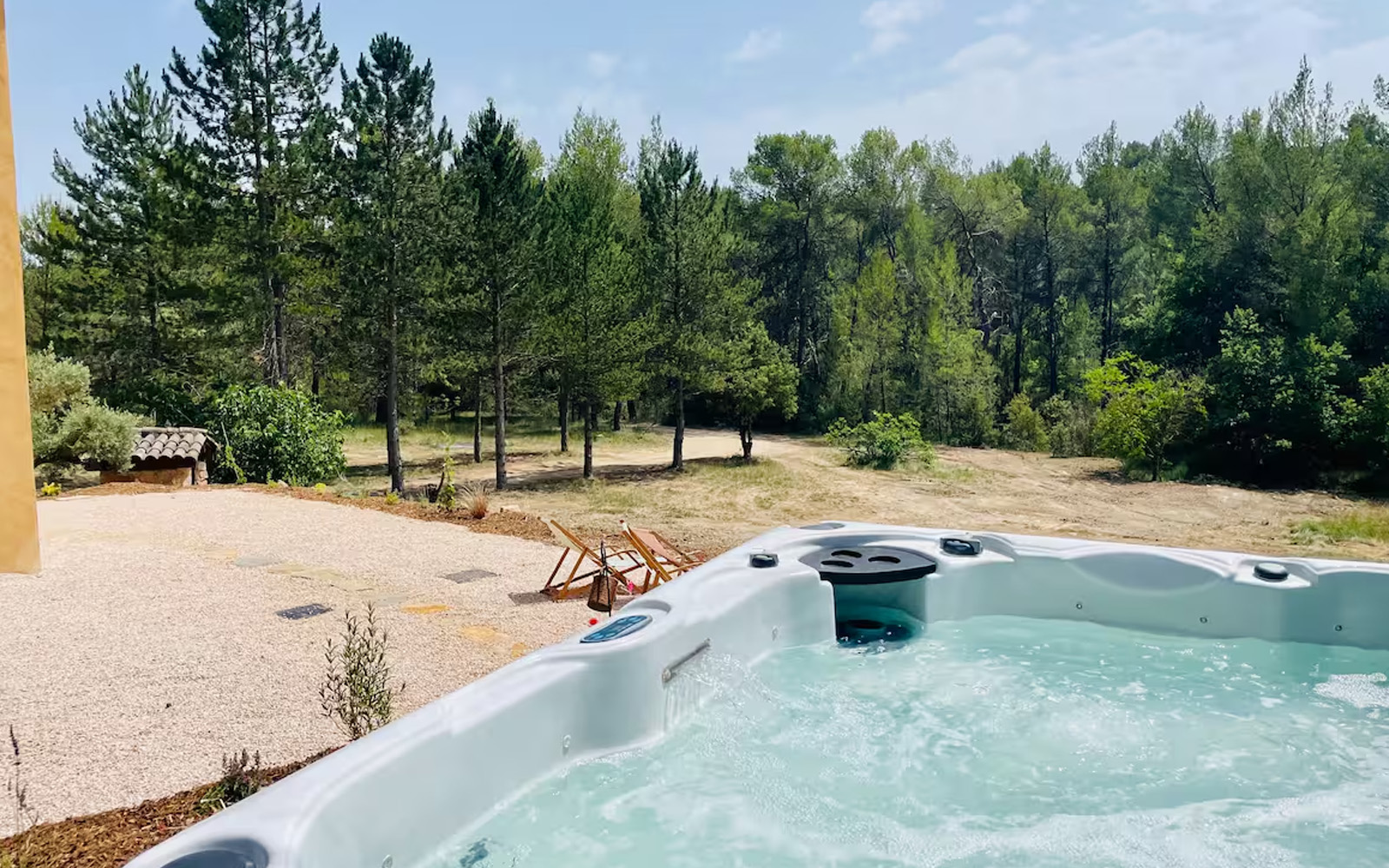 🧖♀️ Un jacuzzi privé (6 personnes) avec vue imprenable sur les collines, disponible toute l’année, 24h/24.